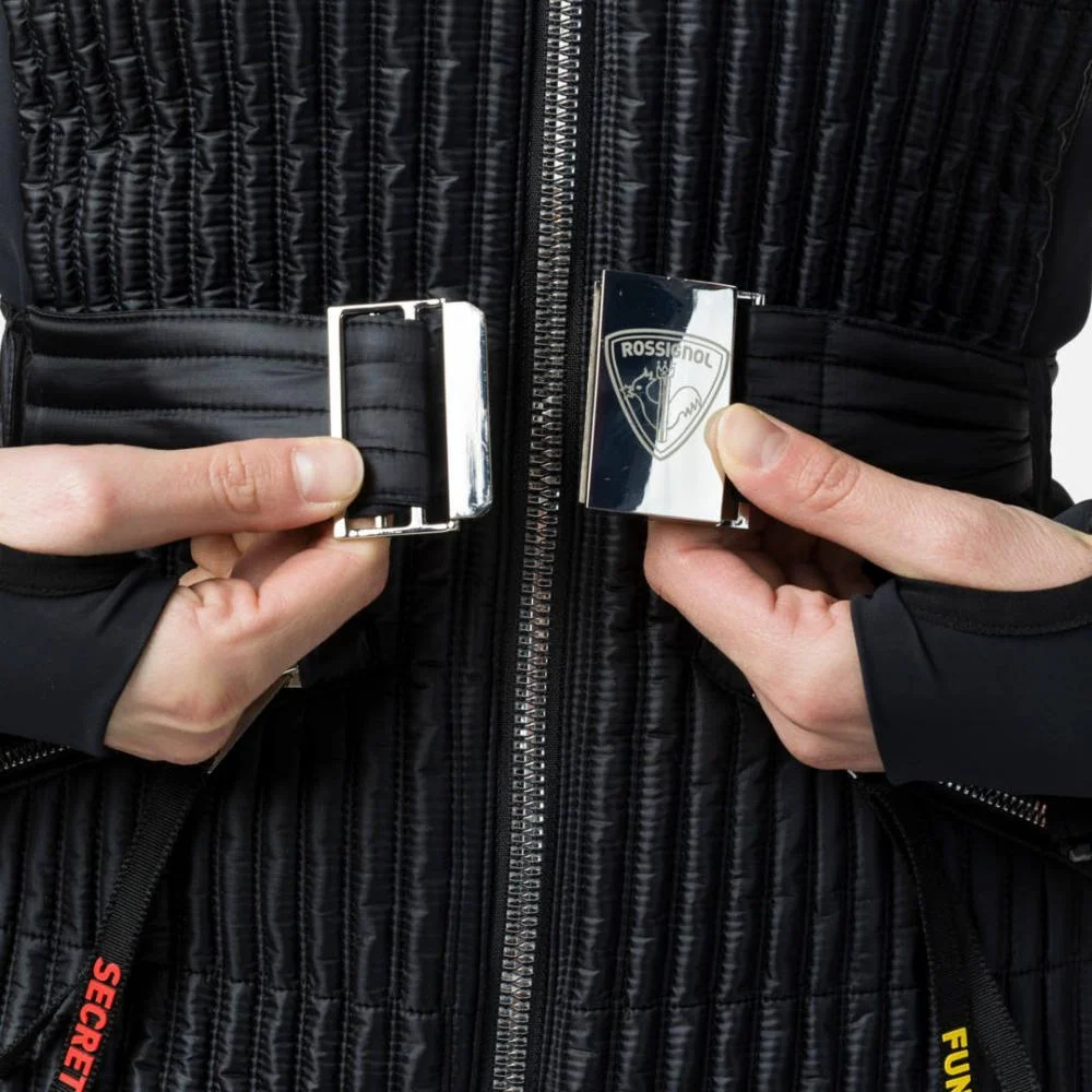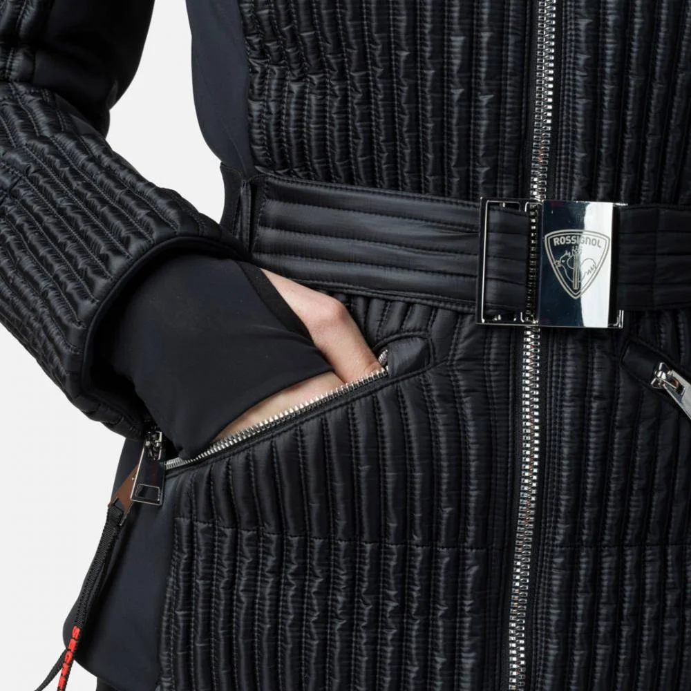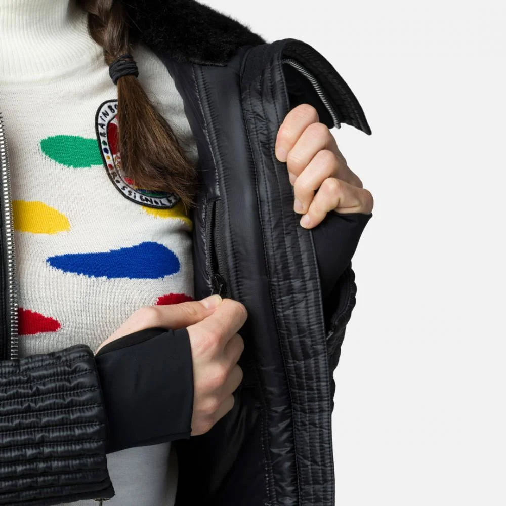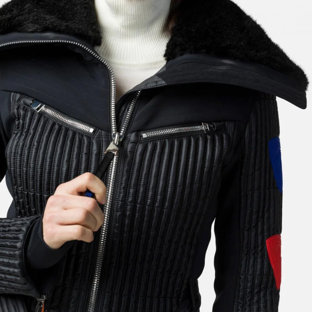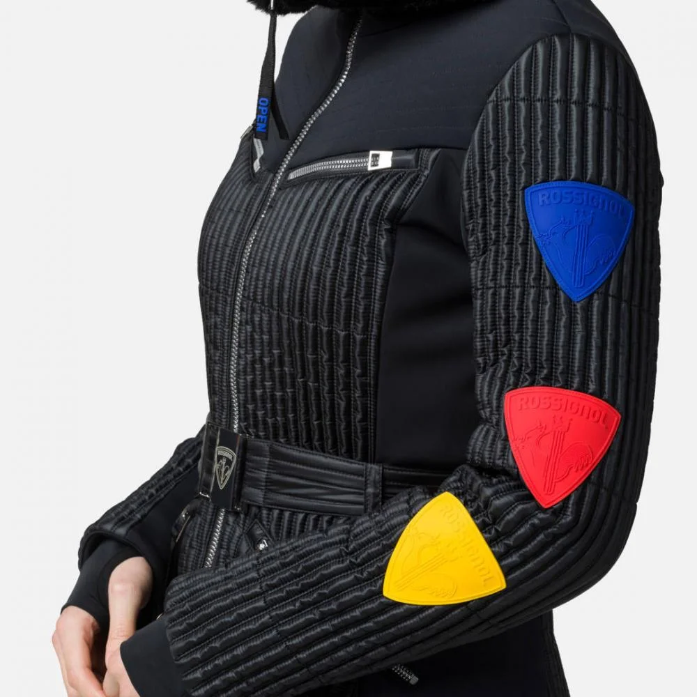 Женский стильный костюм Maddy позаимствовал стиль у модных уличных образов, украшенный воротником из искусственного меха и высоким ремнем на поясе. Красочные силиконовые значки на одном рукаве стали визитной карточкой французского модельера и дизайнера Rossignol Жана-Шарля де Кастельбажак. Металлические застежки-молнии спереди на куртке завершают образ.