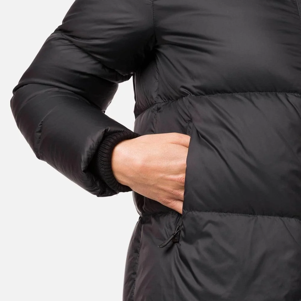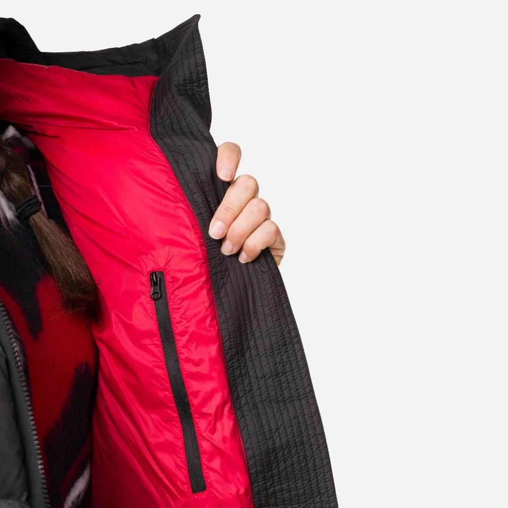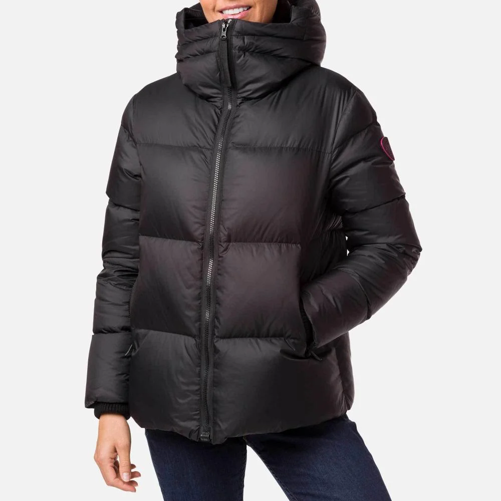 True to skiwear heritage with a touch of urban influence, the women's Abscisse Down Jacket is as stylish as it is comfortable. Part of the Sport Chic Collection, this insulated puffer jacket has a stylish feminine cut and features an innovative magnetic closure so you can zip up or down with only one hand. Tricolored detailing on the hood and a rooster logo on the shoulder honor Rossignol's authentic French chic
