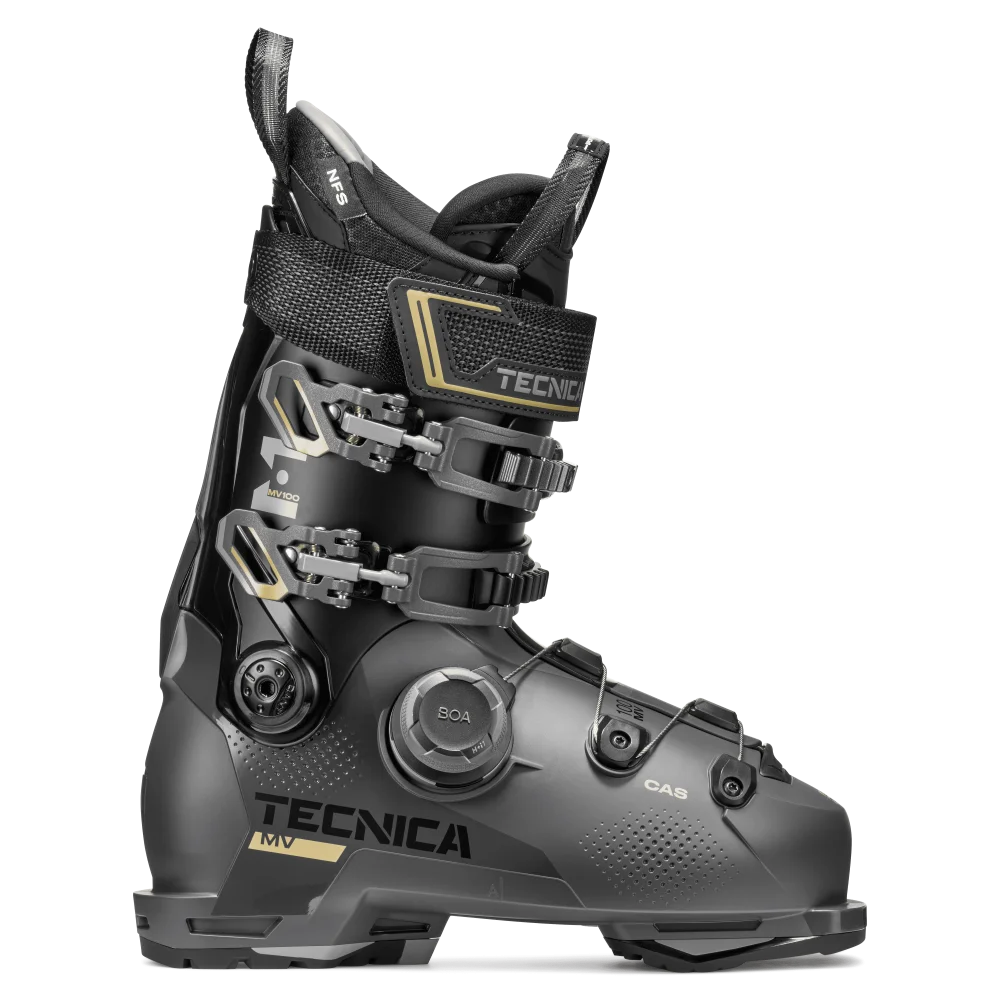 Intermediate level skiers with mid-volume fit needs that are looking for a Dialed In precicsion fit -- meet the all new MachBoa MV 100. With a medium volume anatomically shaped lower shell crafted specifically for the BOA® Fit System, this boot delivers on Tecnica's commitment to performance and fit. With a simple turn of the dial, you get a secure performance fit, while the contoured liner provides exceptional comfort. Stay locked in all day.